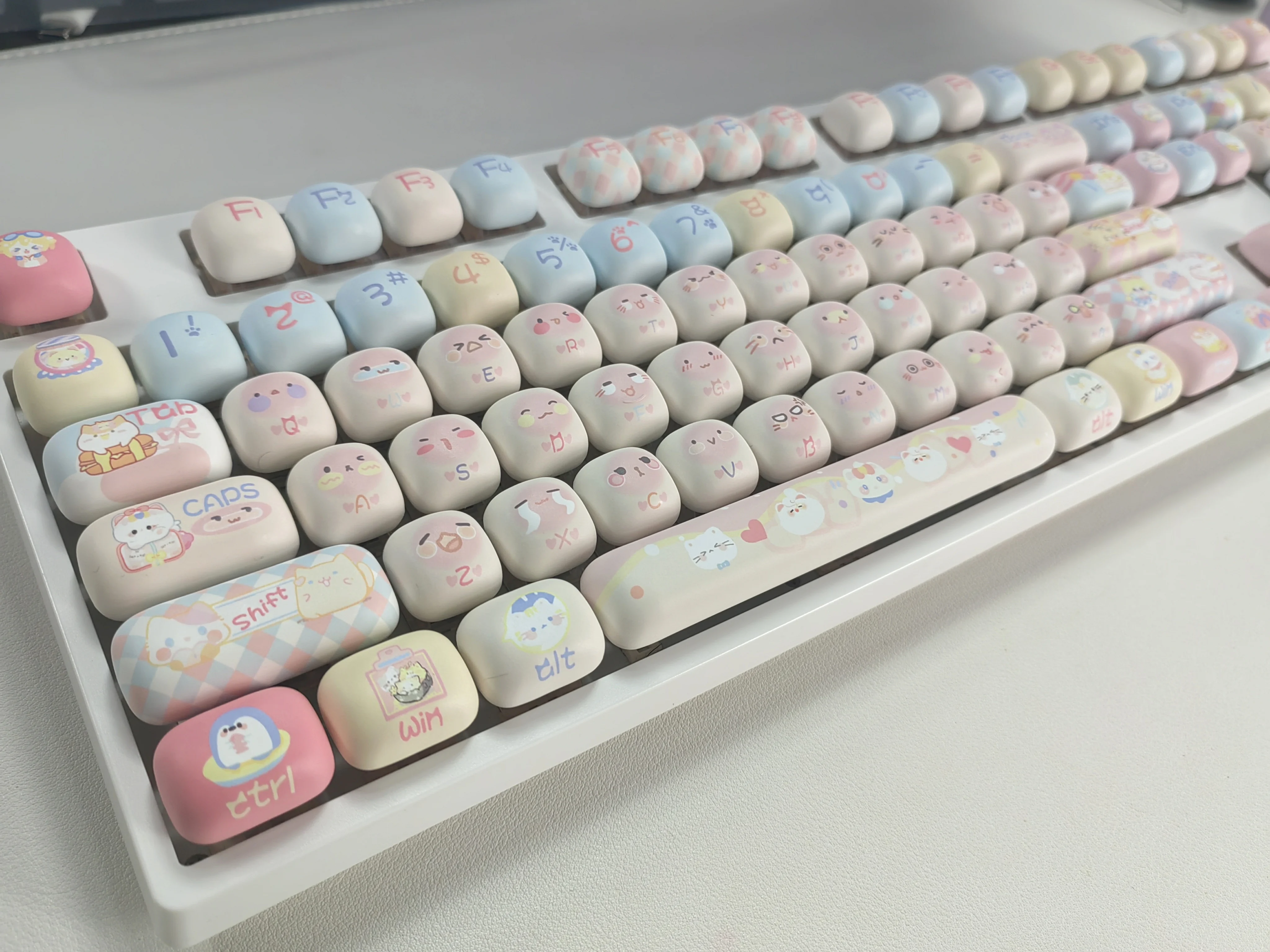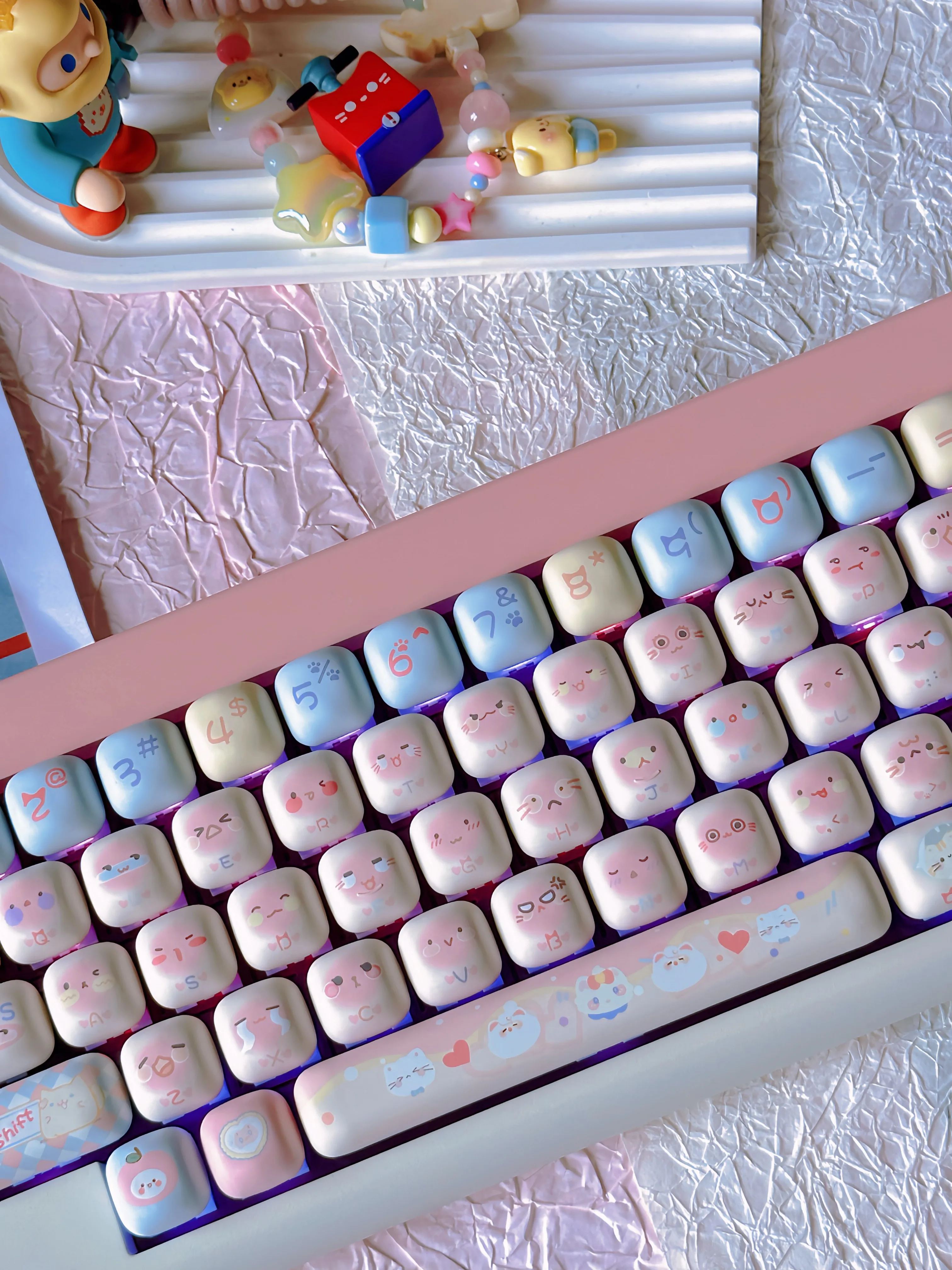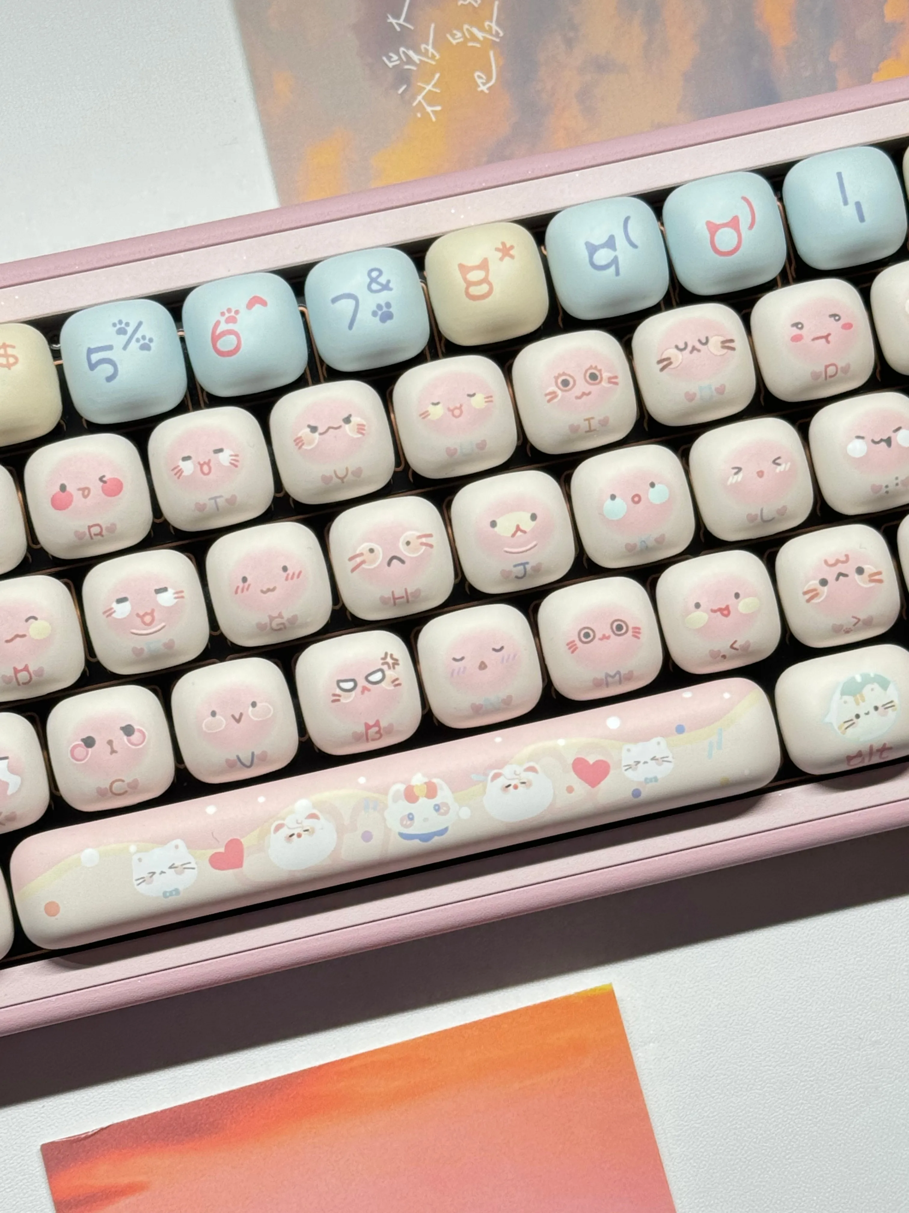 140 Keys Cute Keycaps Cat MOG Keycaps PBT Pink Keys Gift for Girl Cute New Square Thermal Sublimation Mechanical Keyboard 6.25U