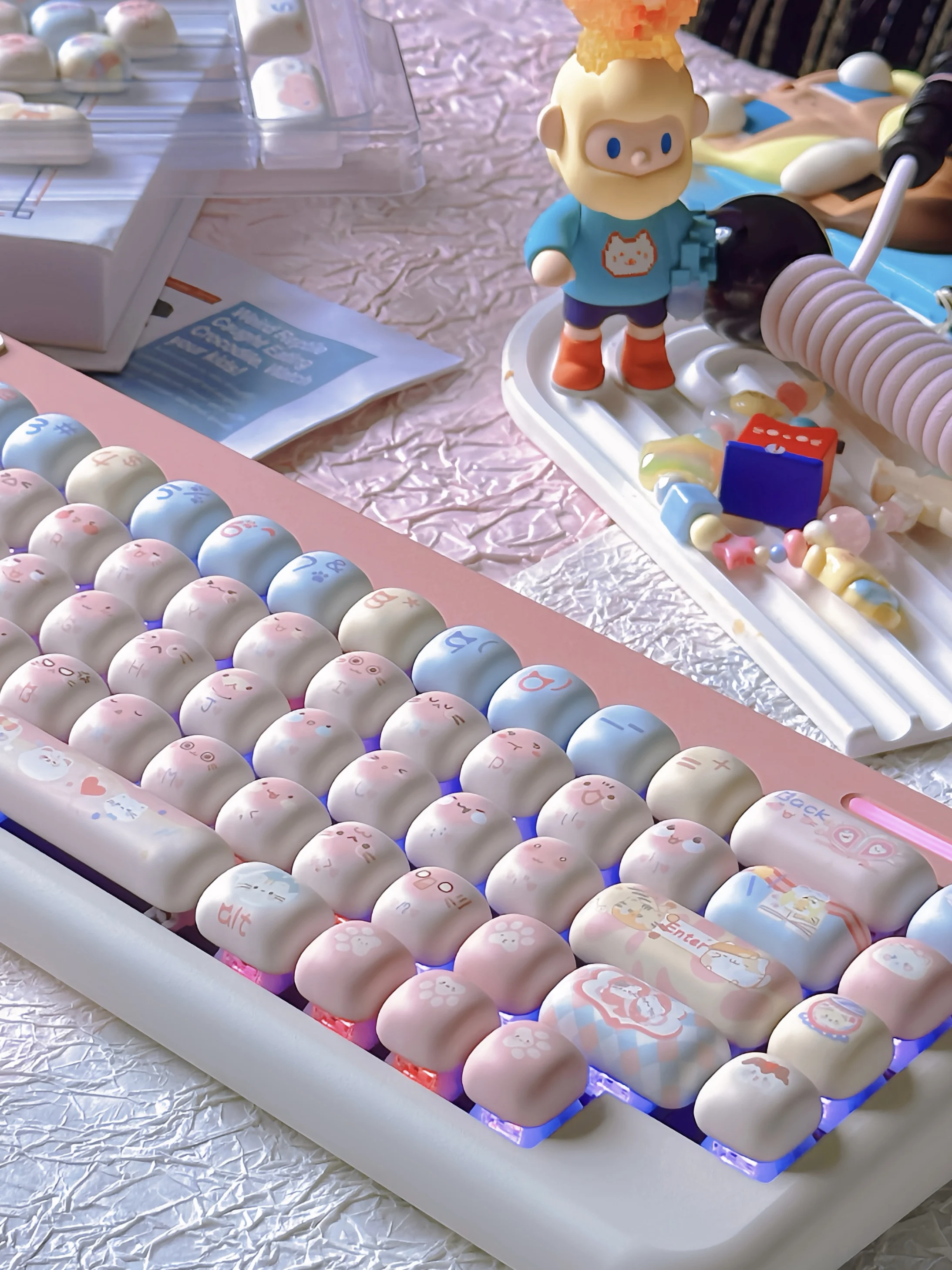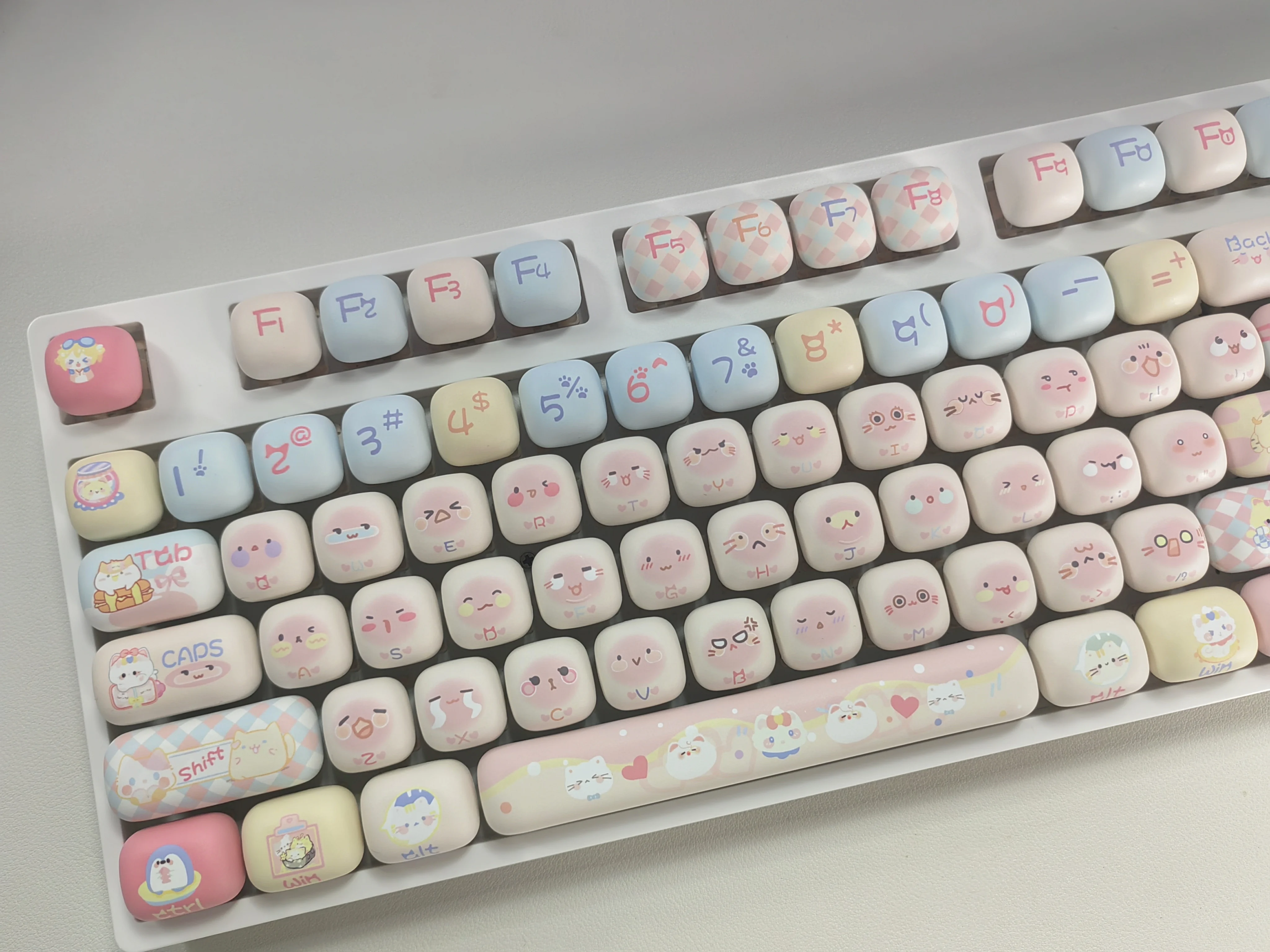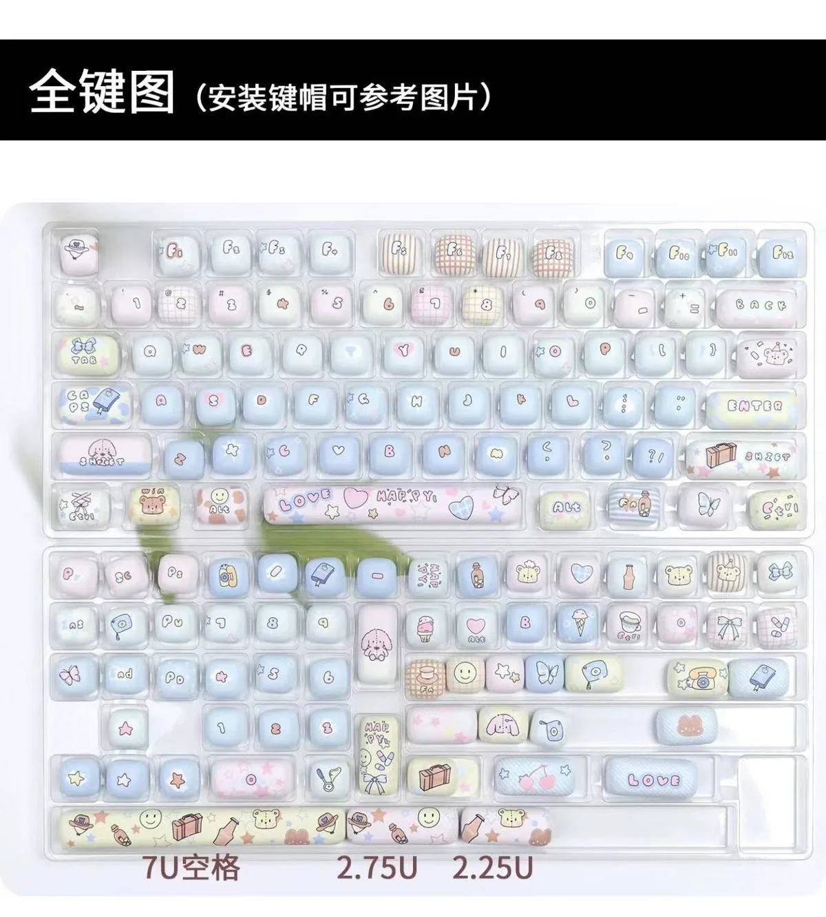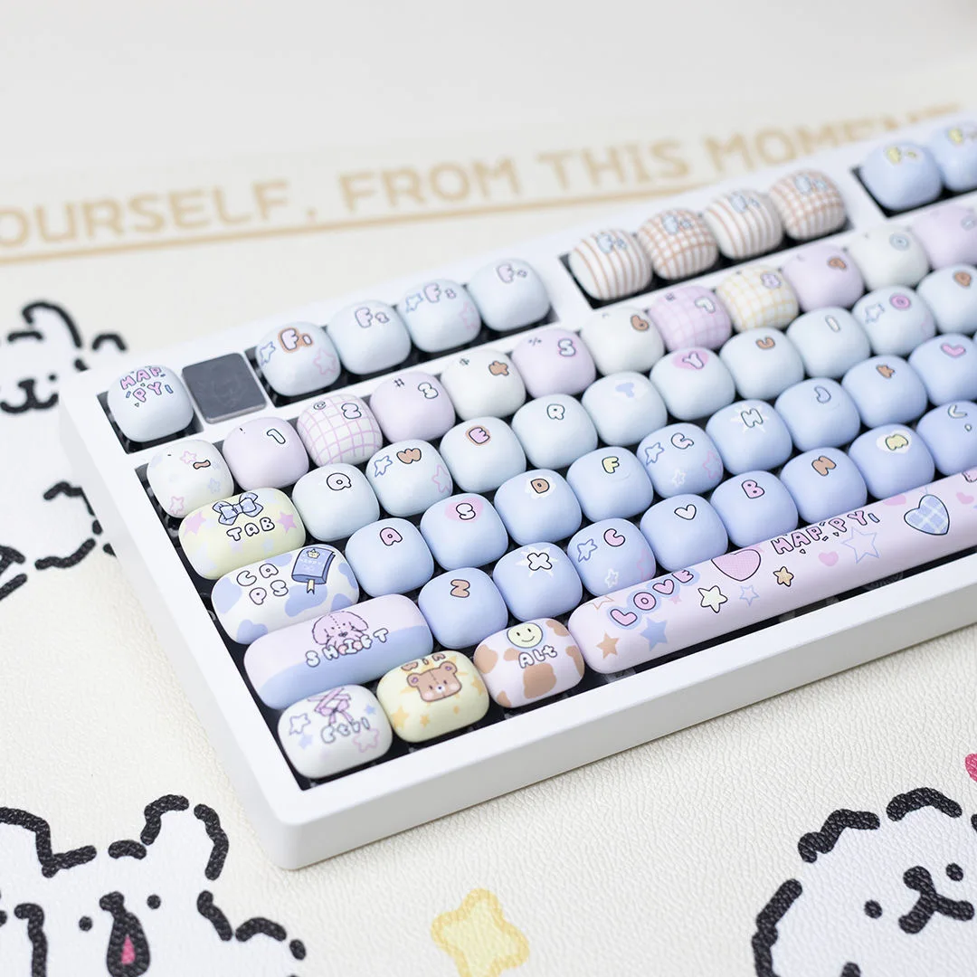 140 Keys Cute Keycaps Cat MOG Keycaps PBT Pink Keys Gift for Girl Cute New Square Thermal Sublimation Mechanical Keyboard 6.25U