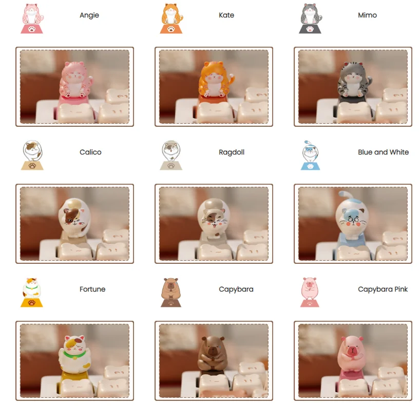 Akko’s original zoo artisan keycaps showcase 9 irresistibly cute animals: 7 cats and 2 Capybaras.