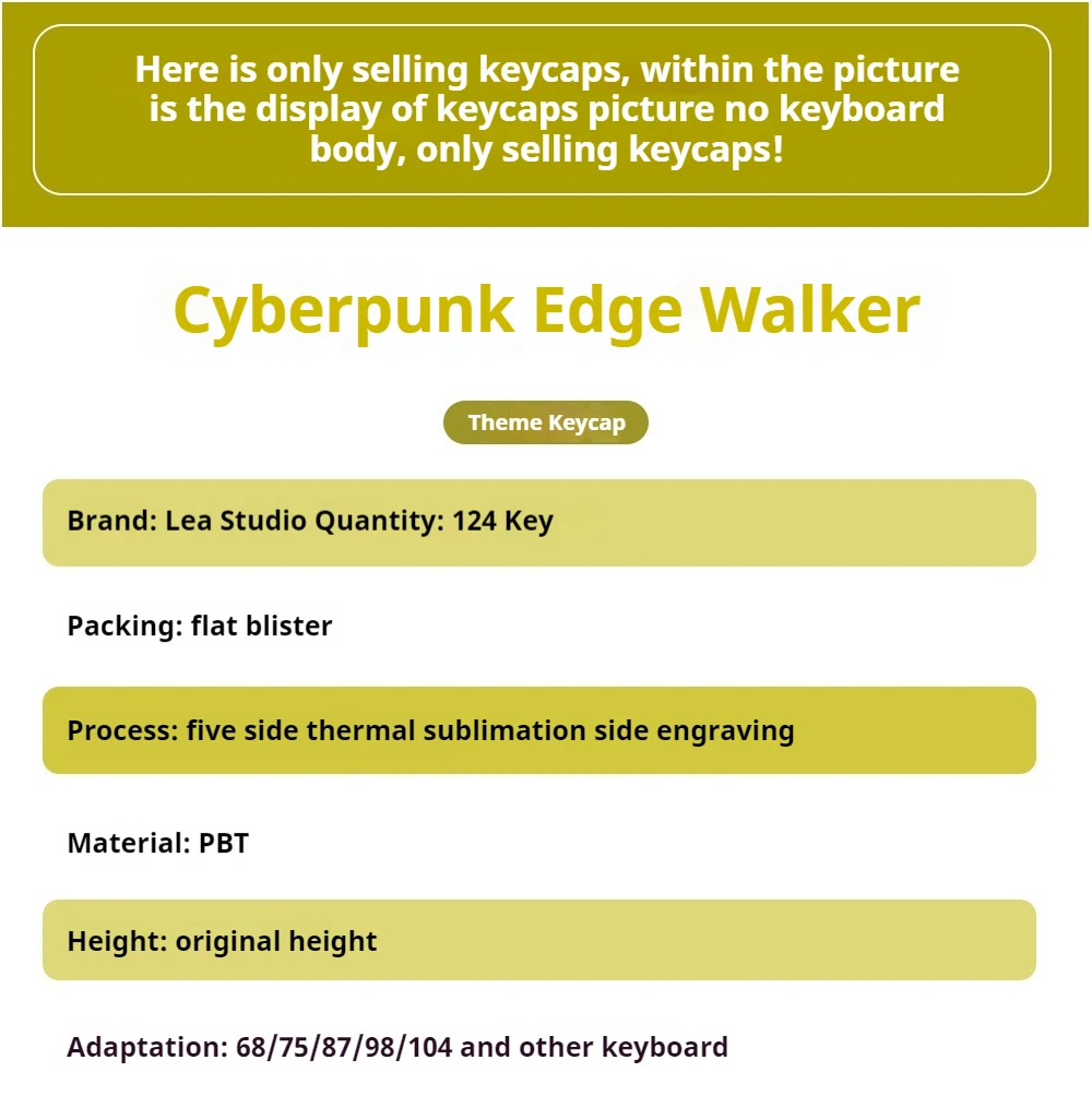 *Note: This set does not include the keyboard. Some keycaps are compatible and some keycaps are not. Please check before placing an order.