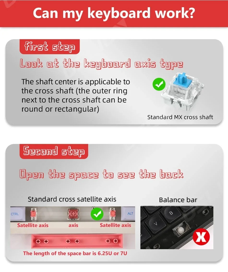 Compatible: 61/64/68/78/84/87/96/96/98/104/108 Key Mechanical Keyboard